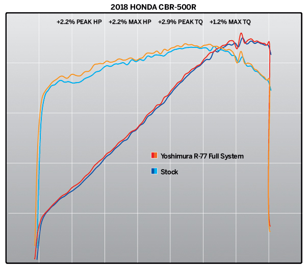 Dengan mufler R-77, sportbike separuh liter itu dapat meningkatkan 2.2 peratus kuasa kuda (hp) dan 2.9 peratus tork (Nm), manakala material gentian karbon lebih ringan 2.7kg daripada ekzos standard.