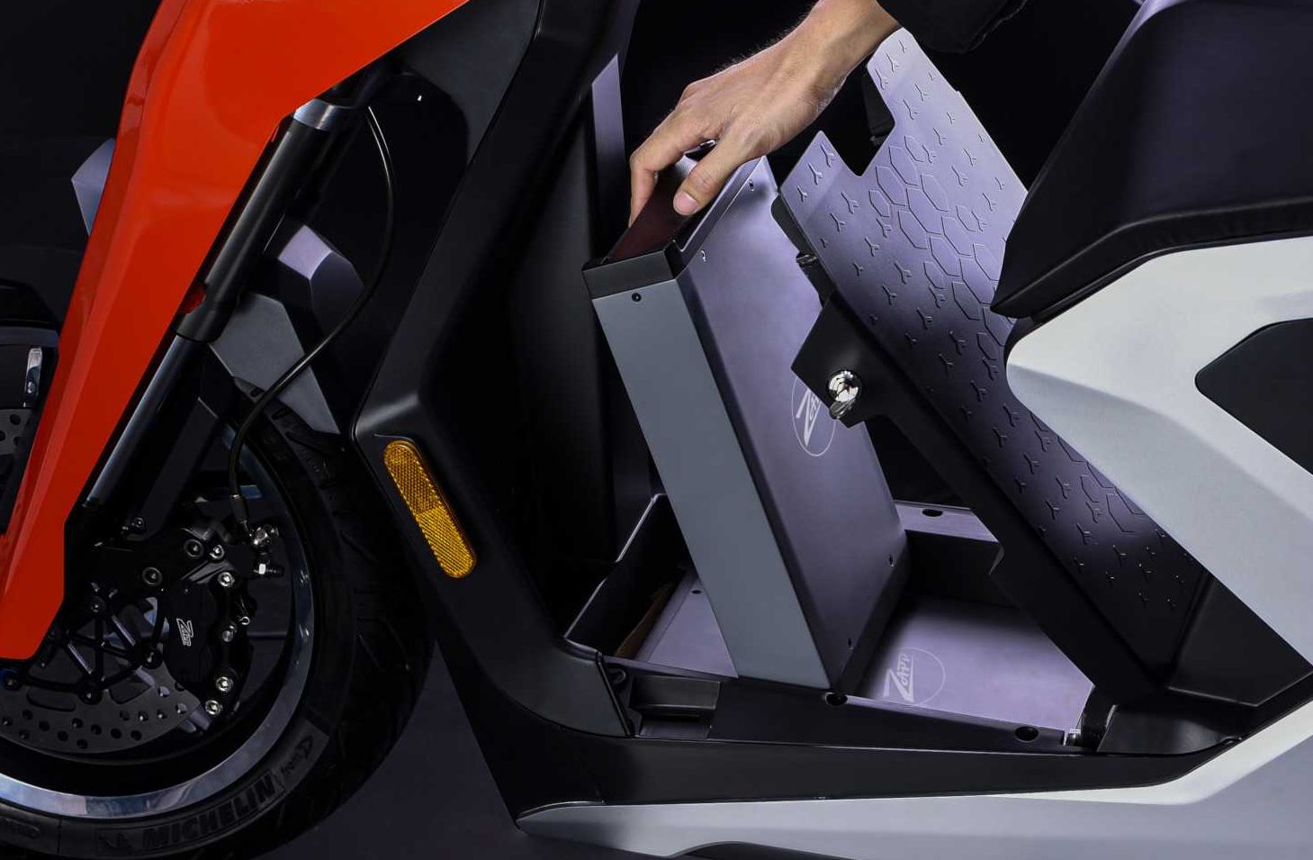 Skuter i300 dipacu menggunakan dua pek bateri litium-ion boleh tanggal dan setiap satu seberat 5kg, serta empat jam diperlukan untuk mengecas penuh. Kedua-dua bateri ini ditempatkan dalam ruang lantai skuter yang juga membantu merendahkan pusat graviti (CoG).
