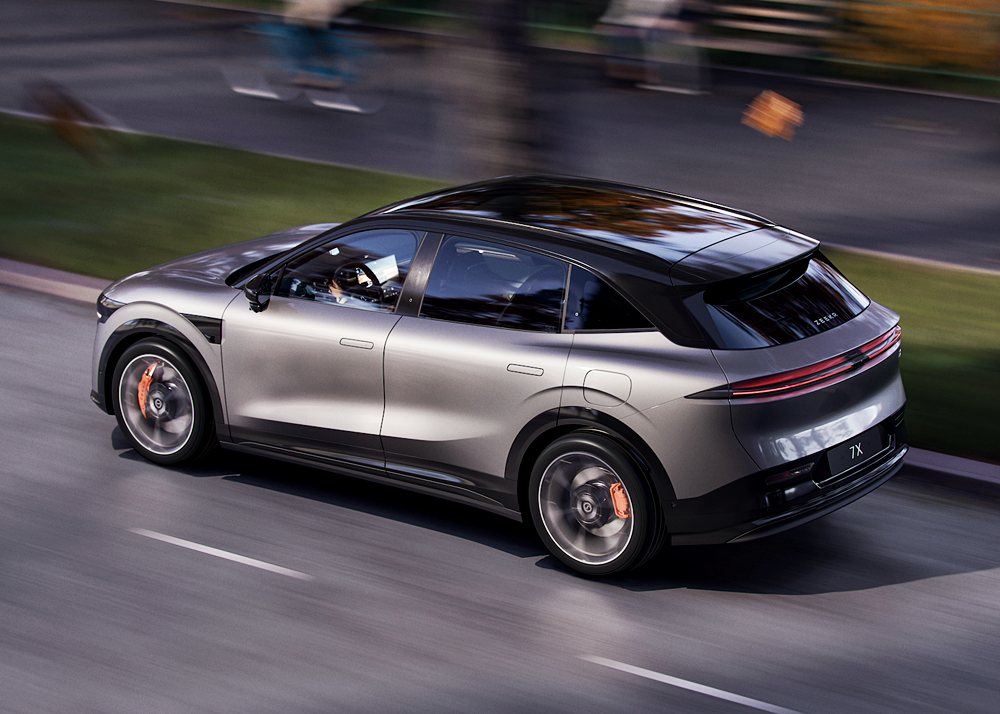 Bahagian belakang tidak serabut dengan sebaris lampu LED. Dari segi trekuasa, 7X Eropah sama seperti pasaran China dengan dijana pek bateri litium nikel mangan (NMC) dan litium besi fosfat (LFP) dalam opsyen pacuan roda belakang (RWD) atau semua roda (AWD).