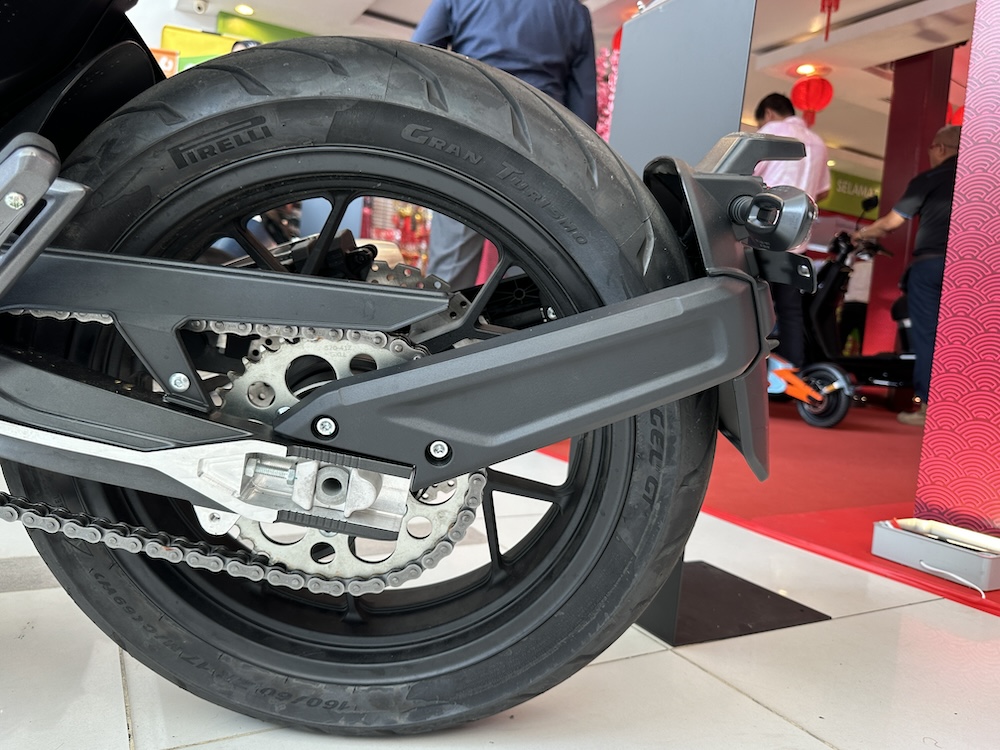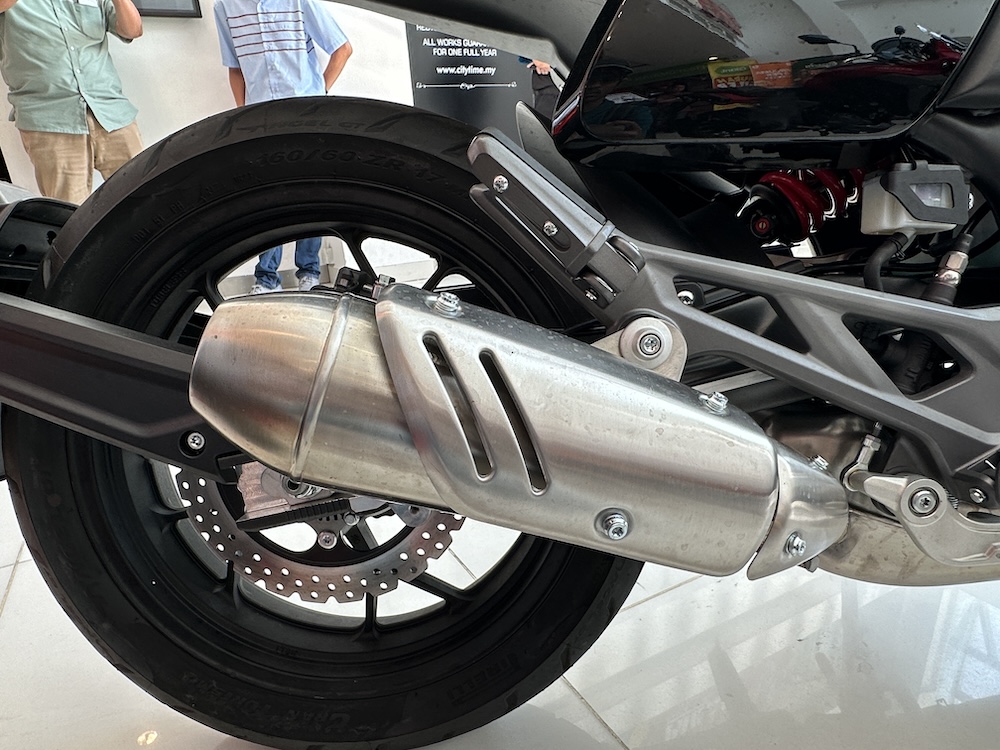 - Rim aloi 17 inci dengan saiz tayar 120/70 (depan), dan 160/60 (belakang).
