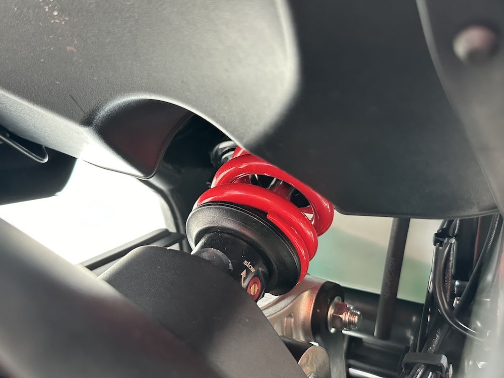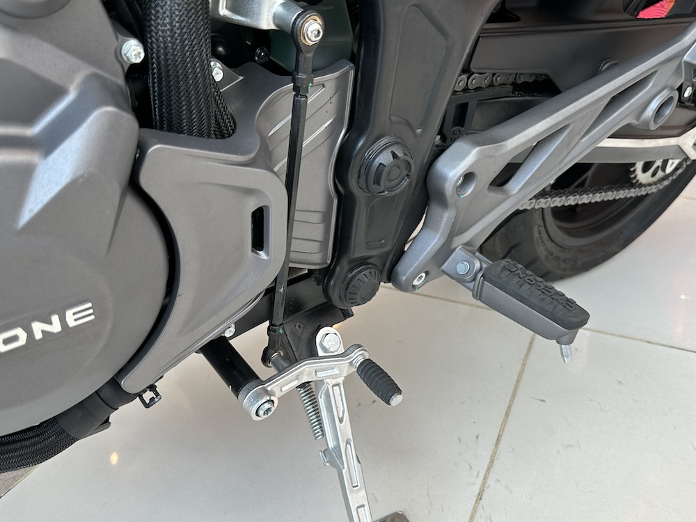 - Fork terbalik (USD) 48mm di depan, dan monoshock (belakang), kedua-dua suspensi jenis boleh laras.