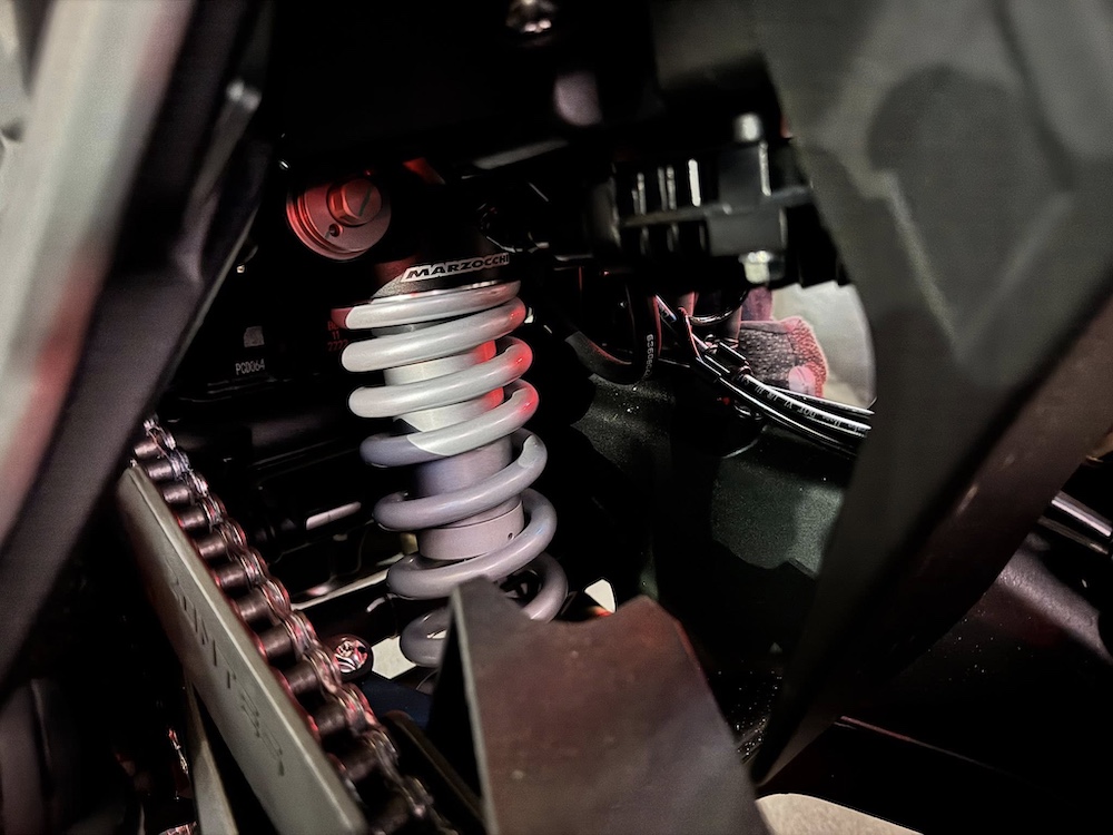 - Kapasiti tangki 22 liter, suspensi Marzocchi boleh laras