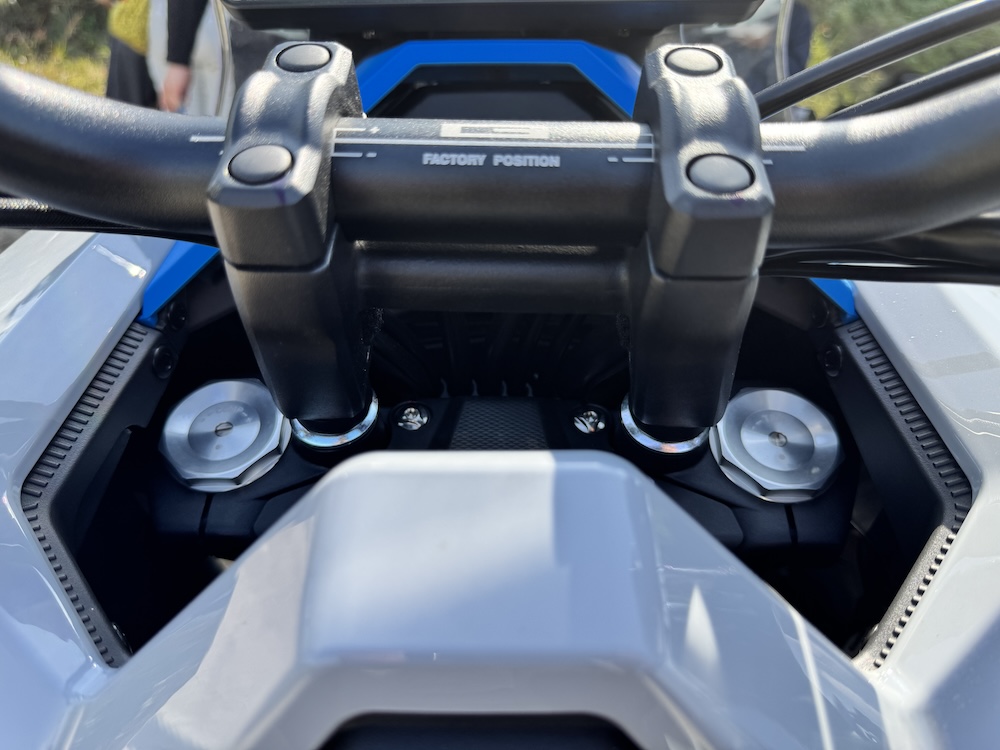 - Sistem suspensi fork terbalik (USD) 41mm di depan, dan dan dwi-absober jenis boleh laras (belakang).
