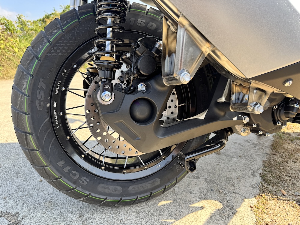 - Rim aloi jejari 17 inci dengan tayar 110/70 di depan, dam rim 14 inci dengan tayar 150/70 (belakang).