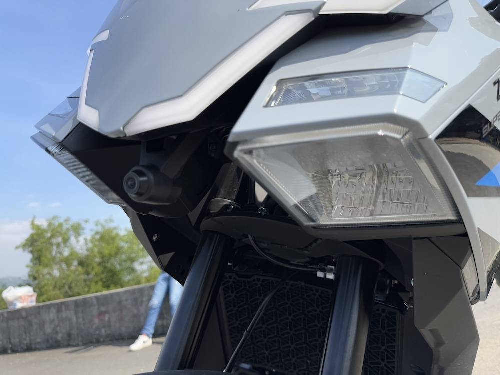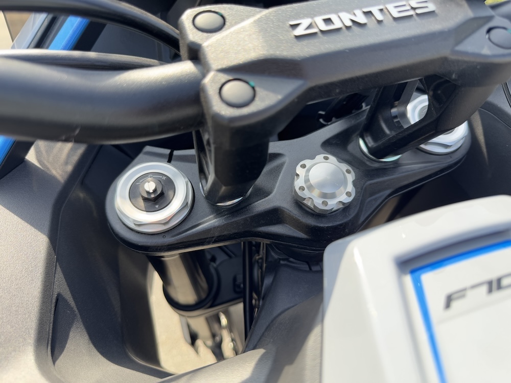 - Zontes 703F dilengkapi ciri pemanas tangan, penyelaras visor angin secara elektrik dan lampu automatik serta lampu suluhan belokan.