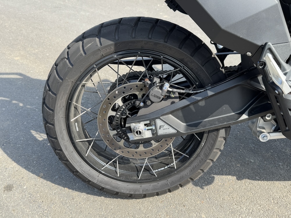 - Rim jenis spokes digunakan berukuran 21 inci untuk roda depan, 18 inci di belakang dengan balutan tayar jenama Michelin berukuran 90/90 (depan) dan 150/70 (belakang).