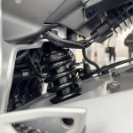 - Fork depan jenis terbalik dengan sistem monoshock di belakang yang boleh dilaras sepenuhnya mengikut keperluan penunggang.