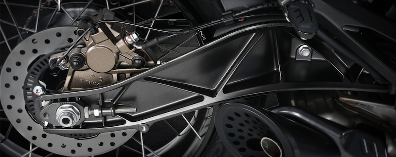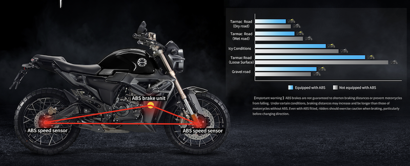 - Sistem brek cakera tunggal pada kedua-dua roda dan dilengkapi Sistem Brek Anti-Kunci (ABS) dwi-saluran Bosch.