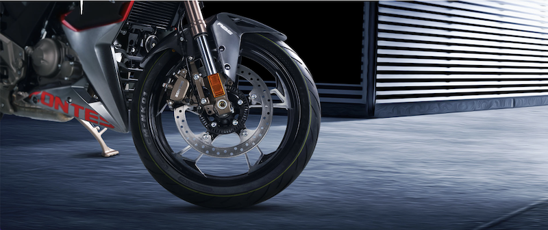 - Persamaan lain ialah saiz tayar 110/70 (depan), dan 130/70 (belakang).